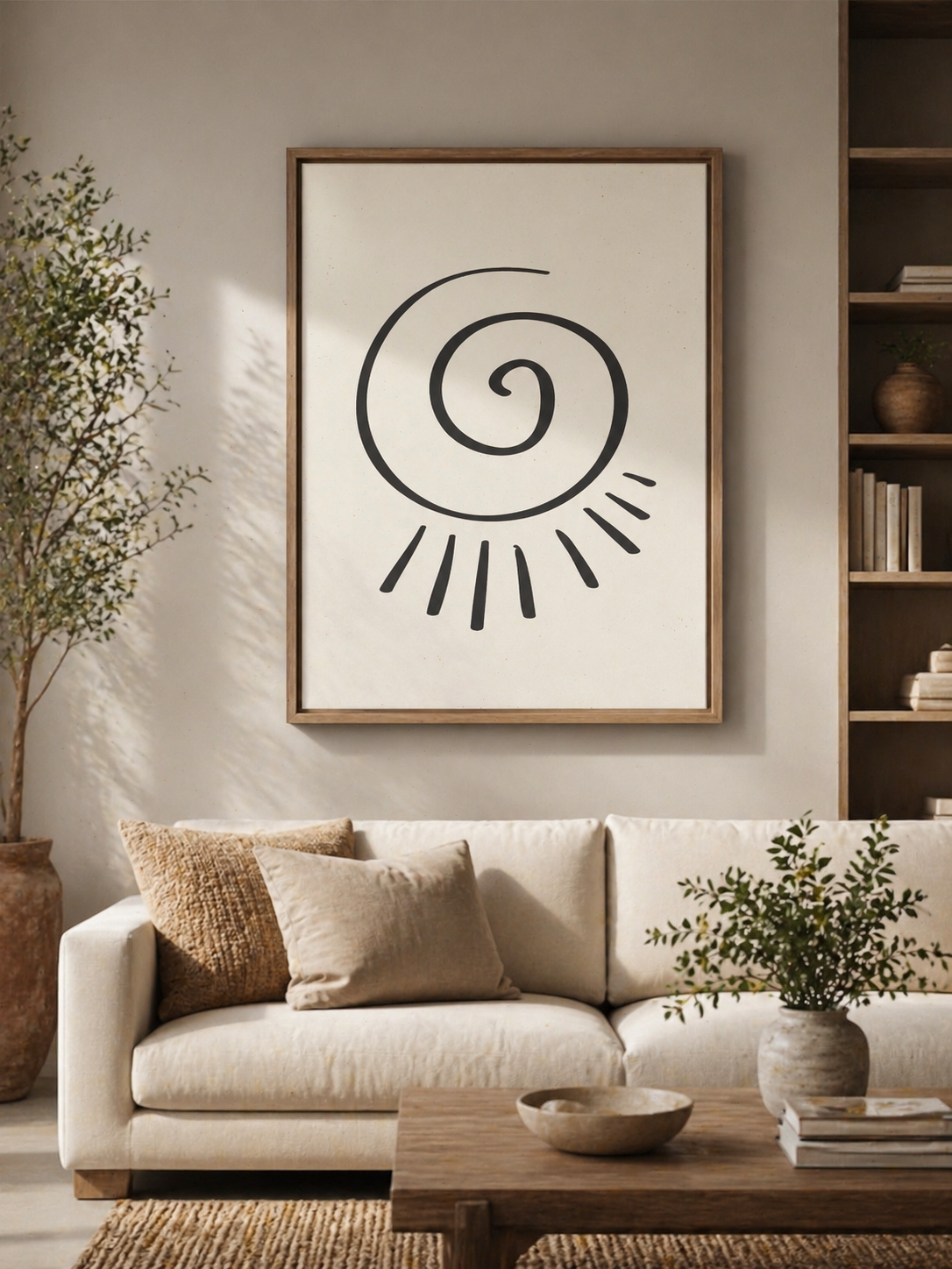Bring effortless elegance and tranquility into your space with this minimalist spiral sun wall art print. Designed with clean, flowing lines and a soothing neutral palette, this artwork blends beautifully into modern, Scandinavian, and boho-inspired interiors.