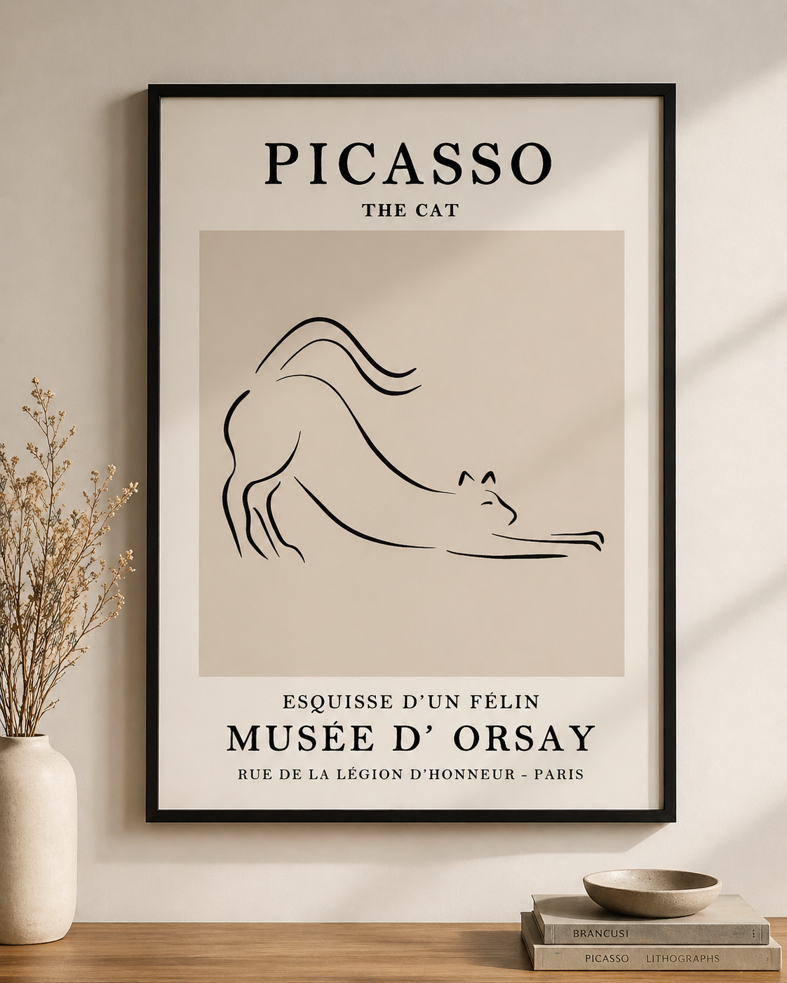 Bring timeless elegance to your space with this minimalist “Picasso The Cat” printable wall art. Designed with clean lines and a modern museum-style layout, this digital download is perfect for living rooms, bedrooms, or office décor. Instantly elevate your walls—no physical product will be shipped.