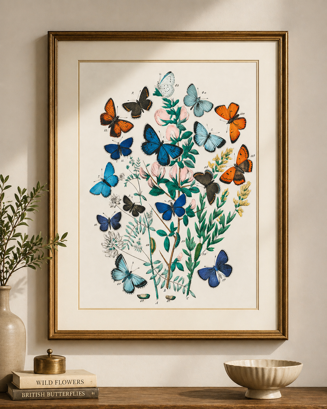 Vintage Butterfly Botanical Wall Art Print – Antique Natural History Illustration