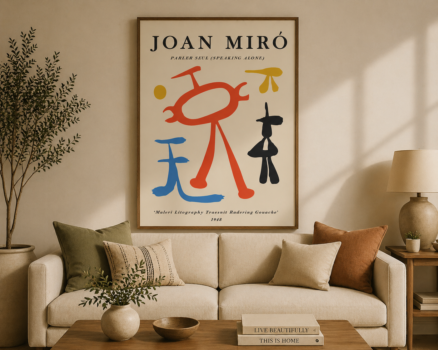 Elevate your living room with this bold Joan Miró–inspired abstract printable wall art. Featuring playful shapes and vibrant colors, this modern poster adds a creative and sophisticated touch to any space. Perfect for instant download and easy framing.